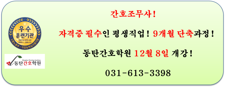 - 동탄간호학원 12월 8일 과정은 짧은기간 수강, 빠른 자격취득을 목표로합니다.